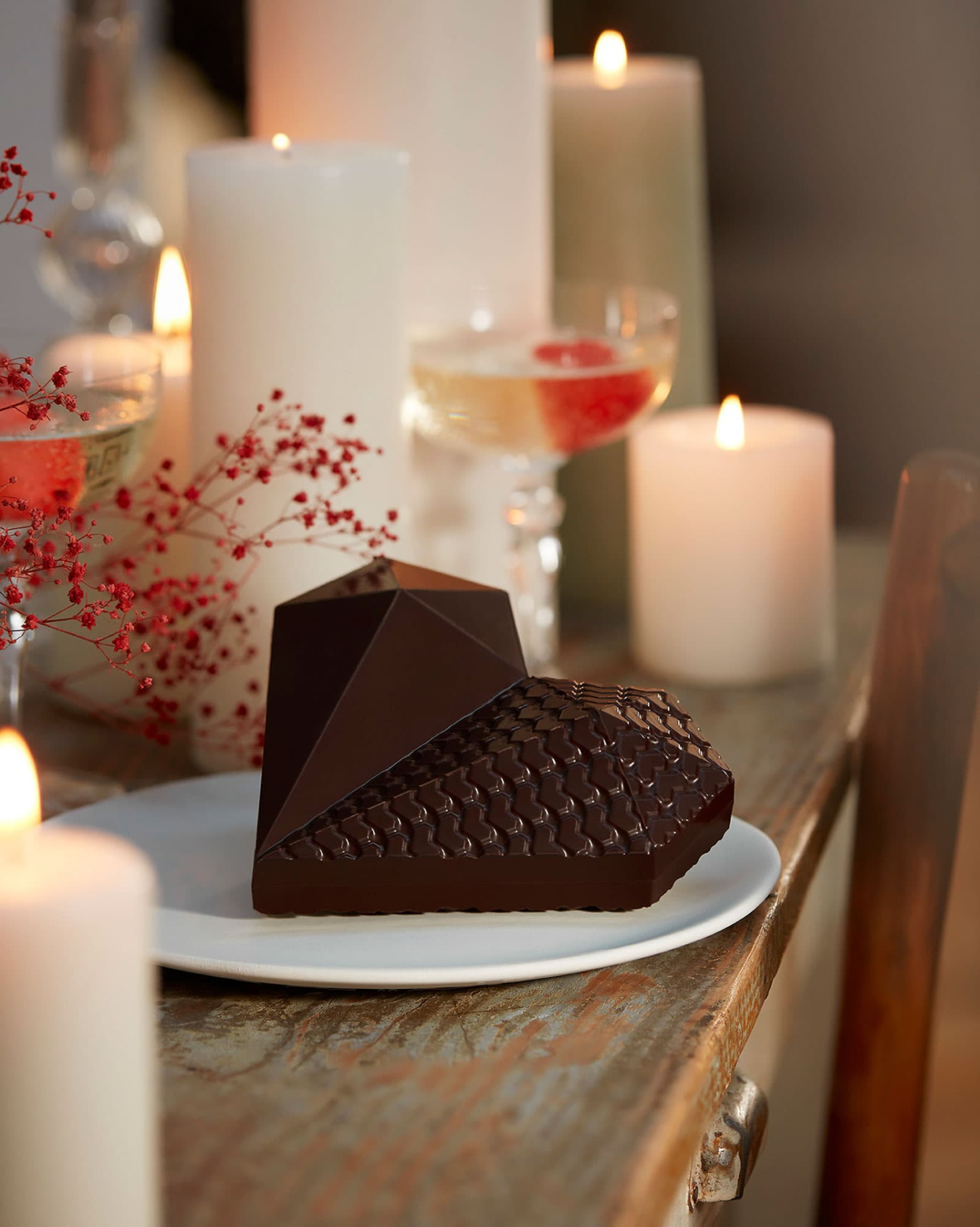 Dieses einzigartige Meisterwerk der Chocolatierkunst vereint insgesamt drei Schichten aus Schokolade und Haselnuss-Mandel-Praliné und besticht durch seine unvergleichliche Textur. Es besteht aus Vollmilch- und Zartbitterschokolade – denn Gegensätze ziehen sich bekanntlich an! Die Oberfläche dieses Herzes ist wunderbar facettiert wie ein Juwel – wer wünscht sich da noch Schmuck zum Valentinstag?