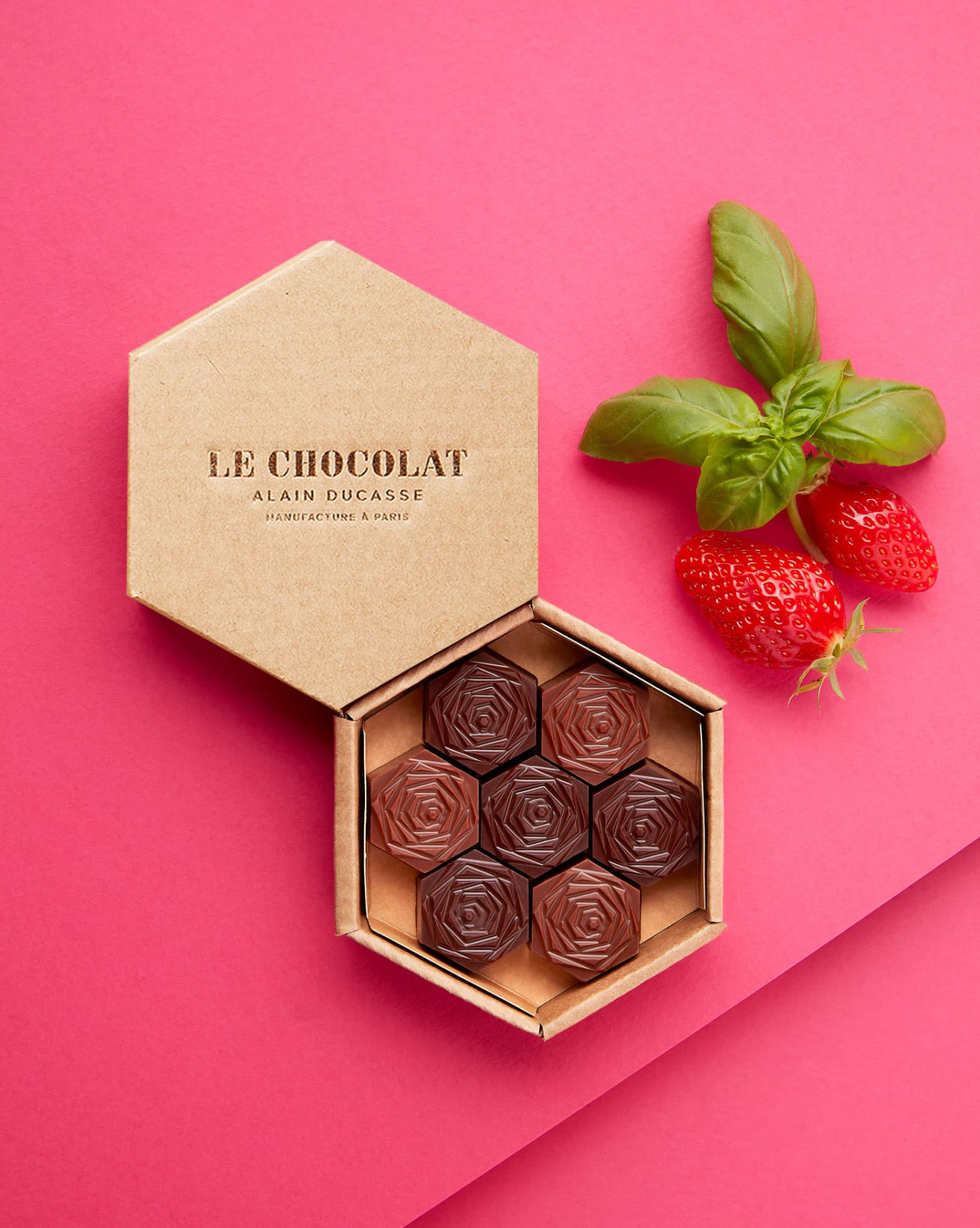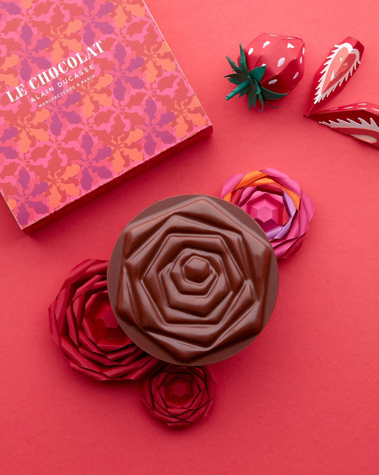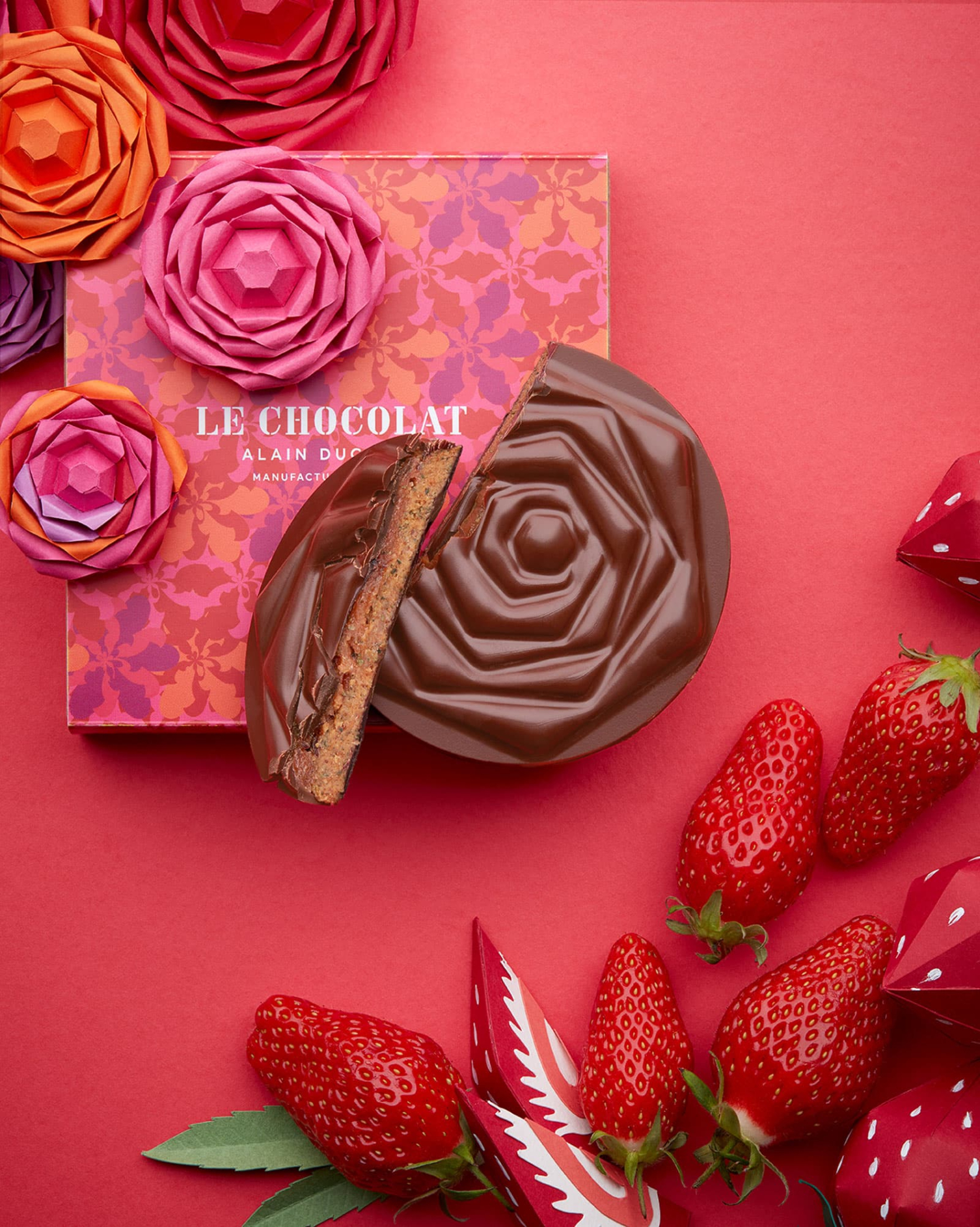 Für unser herrlich feines Rezept mit Erdbeeren und Haselnüssen durften wir die fein ziselierte Blüte der unendlich süßen Rose verwenden: für eine Fruchtpaste aus Erdbeeren und ein Mandel-Praliné, umhüllt von Milchschokolade 45 %.